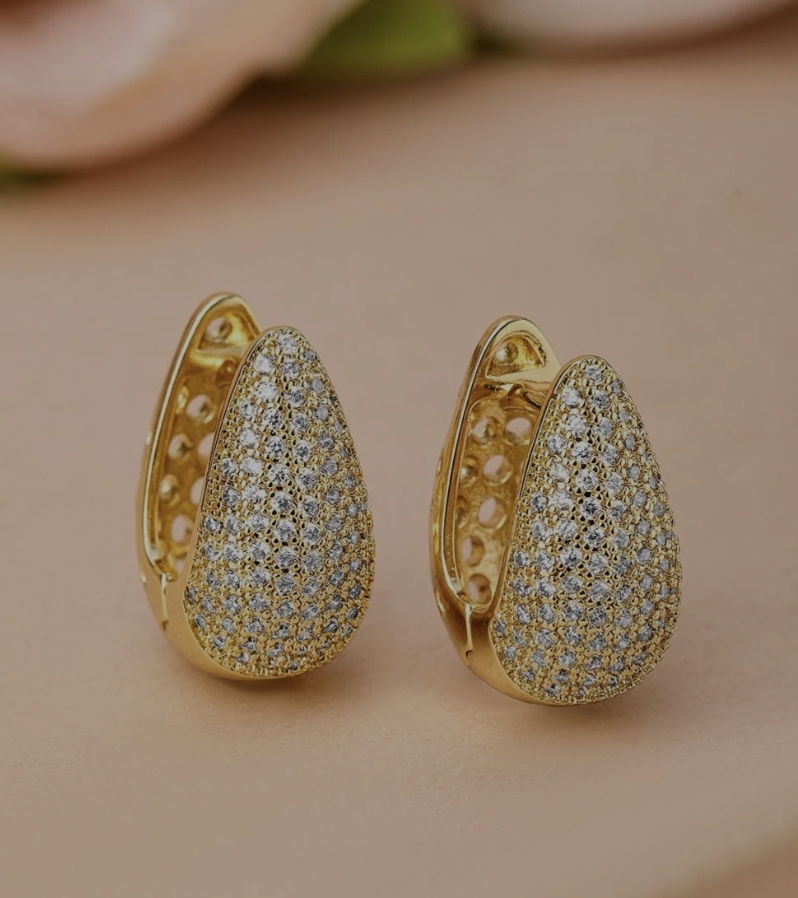 Elevate your elegance with these Luxury Gold-Plated Hoop Earrings, designed to capture timeless sophistication and modern charm. Each hoop is meticulously encrusted with brilliant white cubic zirconia stones, creating a stunning diamond-like sparkle that catches the light from every angle.